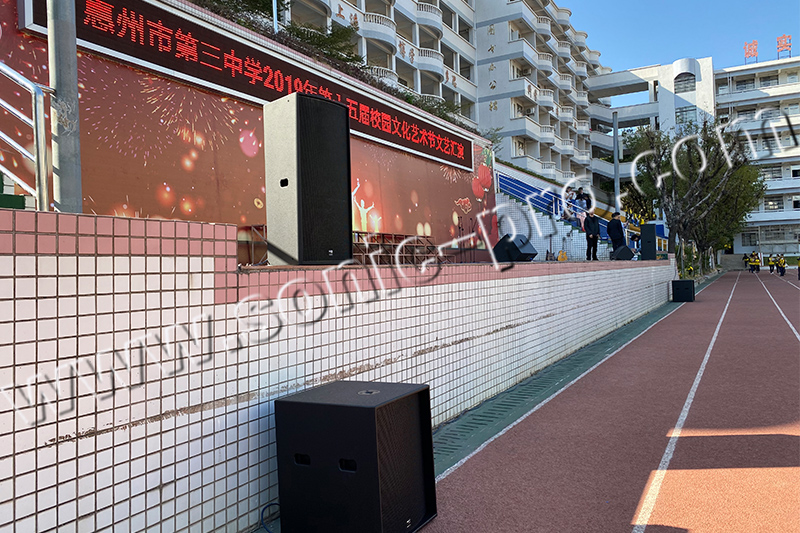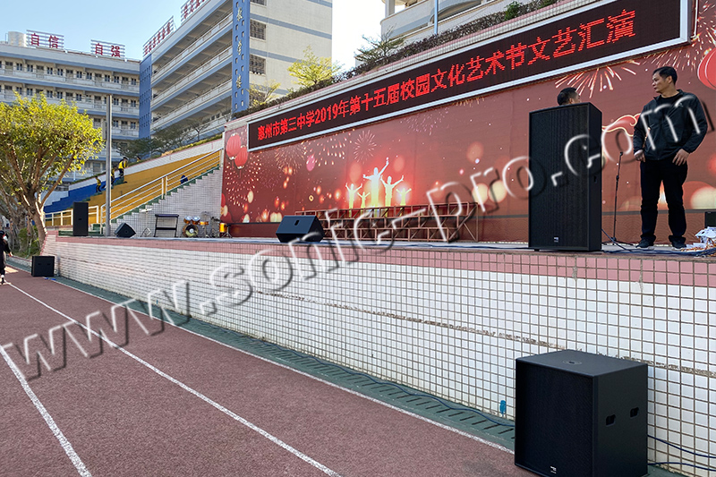 为了丰富同学们的文化生活,惠州市第三中学举办了第十五届校园文化艺术节文艺汇演。甘肃音箱部分采用我们的甘肃TB系列音箱,采用进口音圈、高分子聚酯复合膜,其声音表现细腻、瞬态响应好,能忠实还原语音以及音乐扩声。