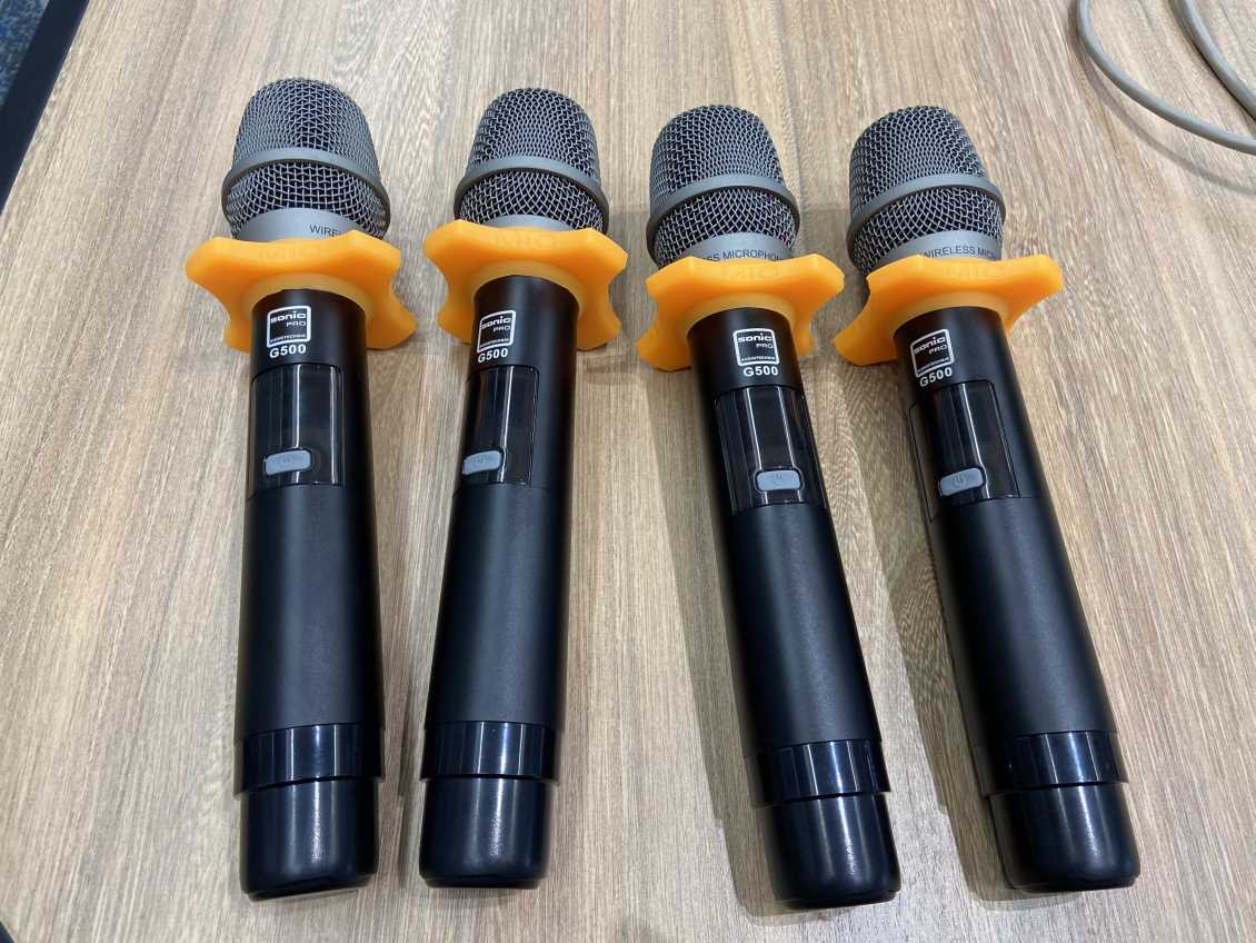 音源部分,我们配置了两套UHF-5000无线手持甘肃话筒,音质清晰亮丽,拥有出色的抗干扰能力,能满足各种会议,演讲的使用需求。