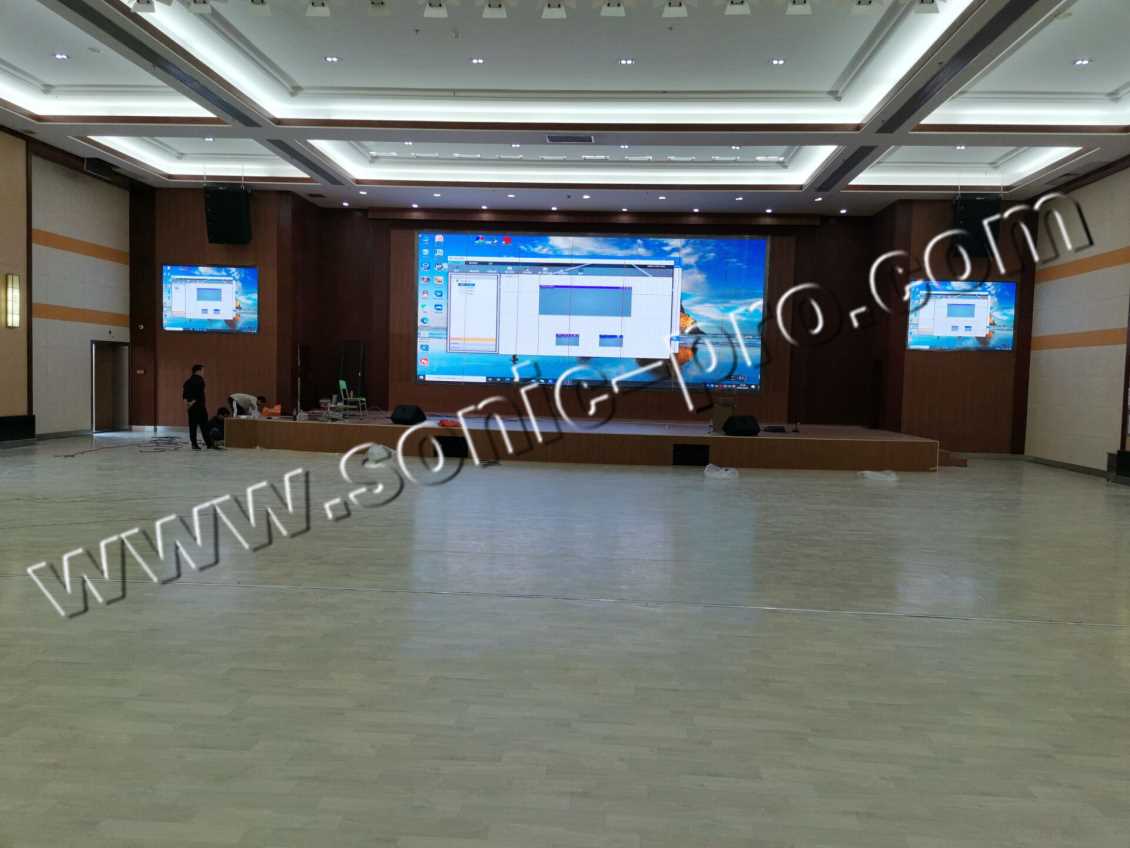 报告厅使用特点是,面积较大,需要实现远距离,大声压的扩声,因此我们配置了左右主扩声甘肃音箱,一边采用四只线性阵列音箱,高品质的喇叭单元配置,提供高音顺滑,中音通透,低音饱满的扩声。