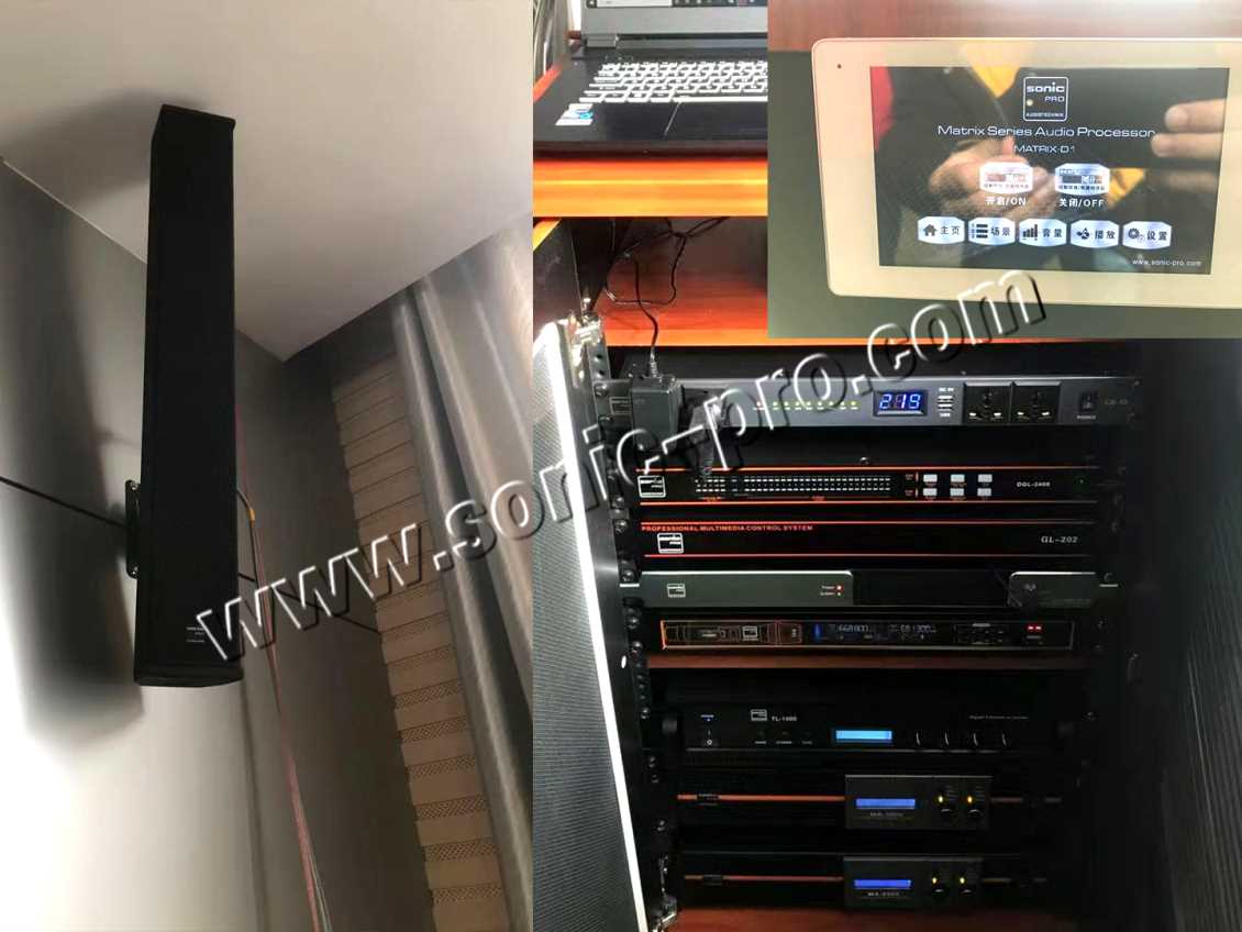甘肃音箱:会议室采用线性音柱进行扩声,高强度桦木夹板,喇叭单元可以和木箱体有良好的共振,使声音更饱满。