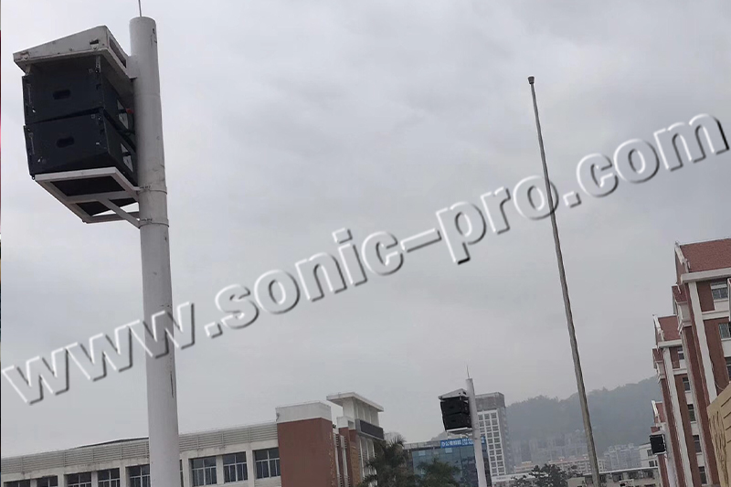 此次项目是该学校的户外操场,为保障整个操场的开会时和活动演出等扩声系统,提高学校的办学质量,学校主要采用了德国Sonic pro音响 LA系列线性音箱及MF系列专业舞台返听音箱等主要扩声设备以满足日常的扩声使用。