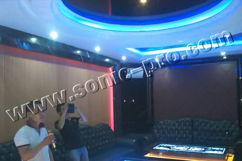 广东飘飘玖香装饰——私人娱乐会所 ,主要是用于接待公司高端客户的私人会所,会所装修豪华,音响系统全部采用SONIC PRO音响。红色钢琴烤漆的CO炫彩系列音箱,灯光照射下倍显流光溢彩,与娱乐室的装修风格完美融合。再搭配带有LCD显示面板且具有国家专利设计的