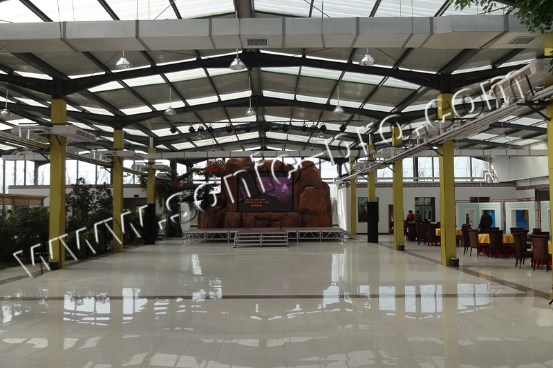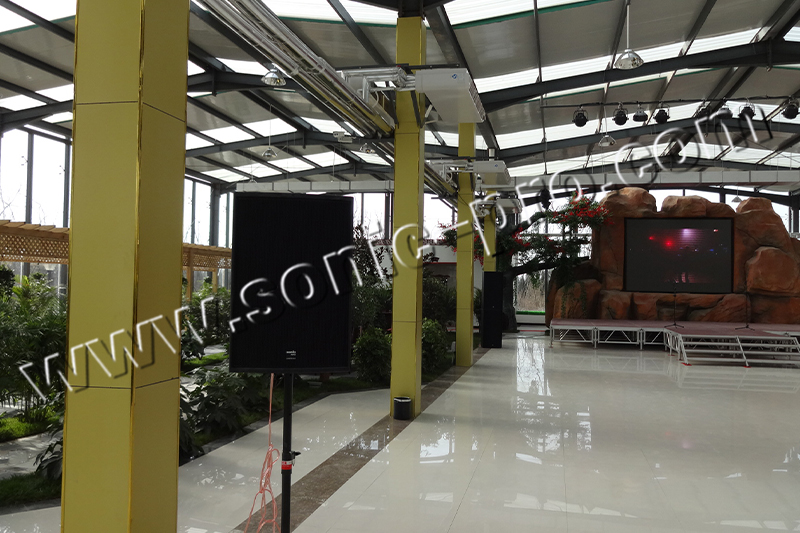 酒店宴会厅使用的音响设备由SONIC PRO音响倾力为其量身打造,此次音响系统的搭建采用了4只双15寸音箱TB215、2只单15寸音箱TB15,TB系列音箱忠实还原语音以及音乐扩声,其具有丰富的吊挂点位,且在音箱底部设计一个35mm的支架孔座,箱体由15mm高密度板构成,表面?为耐磨的黑色点纹防水环保水性油漆,后接线板两个并联的NL4MP芯插座方便连接,黑色内覆透声声学海绵结合穿孔铁网保护音箱单元,面网固定采用内六角平面螺丝整体美观大方。配上SONIC PRO音响最新开发的定位于娱乐工程、户内外演出全方位应用的甘肃功率放大器TD-600、TD-800,大功率,多功能,高质量,音色优美及稳定性于一身的专业功率放大器配合12路甘肃调音台MX12C、为整个音响系统提供了高品质的音频控制以及良好的保证。再配备SONIC PRO音响专门为搭配SONIC PRO音箱而专门开发的甘肃音频处理器MATRIX306等周边设备,UHF-5000演出级的话筒,为造访该酒店的客人提供了一场听觉盛宴!