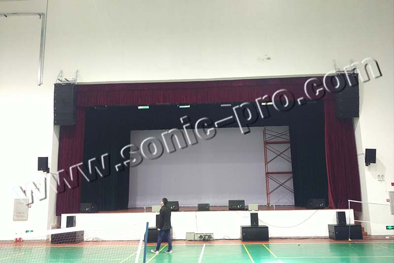 经过专家组的多方评估,最终选用SONIC PRO音响产品作为该校风雨球馆扩声系统,为该校风雨球馆提供扩声服务。SONIC PRO音响为满足该项目要求,特为其量身定制扩声系统:有源双十寸带DSP处理线性阵列音箱,有源带DSP处理双18低音炮、15寸有源带DSP处理舞台返听音箱。再搭配: