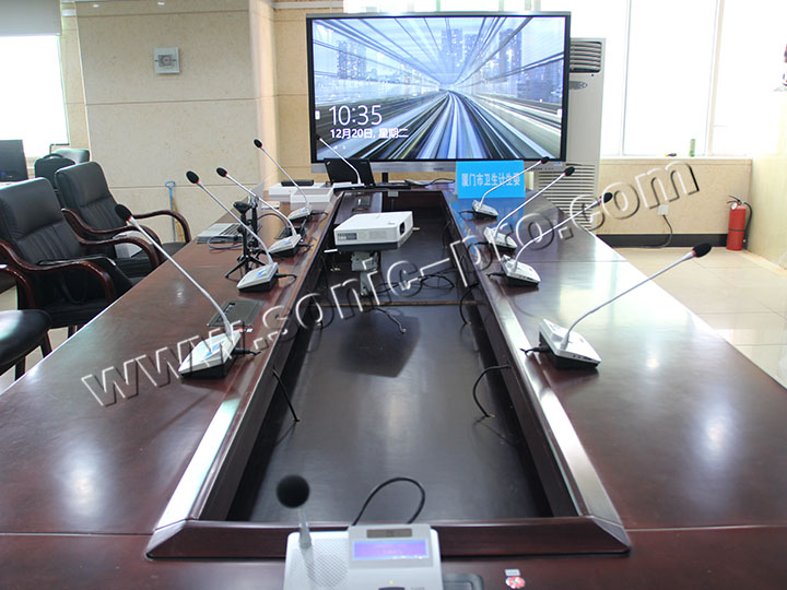 支持RS-232/485控制协议、带液晶显示,且简、繁、英三种语言可选;同时还配有一套无线手持话筒用于会议主持、流动发言、培训等功能使用,