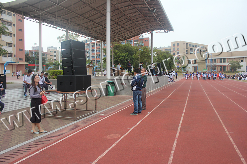 SONIC PRO音响全套产品助力北京师范大学东莞石竹附属学校十周年校庆暨师生表彰大会现场,音箱采用吊挂安装的LA线性音箱(LA-210),它具有较大的动态容量,能提供干净、连续、精确的高品质声音;应用相位校正以及专利线性号角技术,能忠实还原规定范围内频谱信号,音箱上装备精密的铝合金吊挂系统,音箱与音箱之间的连接角度可通过吊装件来调节,采用最新人体工程学和机械设计,使整个系统安装简易快捷并保证了安全。低音音箱采用SUB系列(SUB-218),再加上同轴系列音箱(TZ-18),使声音更深沉、具有爆发力,更适合表彰大会现场氛围。