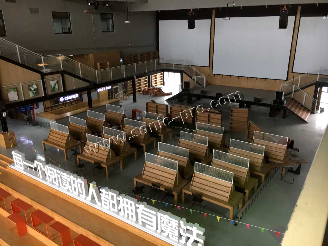 凭借客户的信赖和业界的优异口碑SONIC PRO(斯尼克)音响荣幸成为其中个性鲜明的落地可登台背景大书架的扩声系统供应商,也为合肥瑶海区建设自己的图书城贡献了一份力量!
