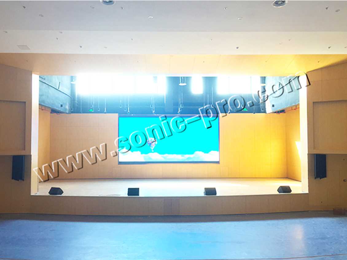 报告厅作为江南路中学的举行会议报告与小型演出的场所,甲方要求音响系统应在具备会议报告扩声功能的同时又兼具小型演出扩声的使用需求。即用一套音响设备实现"两个场所"的使用功能。