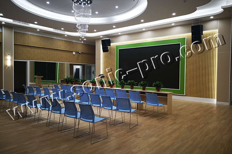 该报告厅主要用于举行各类会议,以及小型文艺演出活动。其扩声设备从使用功能上要满足多种活动的扩声要求。