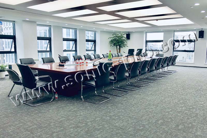 音响系统以会议为主、兼顾演讲、报告等。系统以满足报告、会议的同时应适当考虑演讲、音乐等多用途性。在偏长混响时间设置的情况下,小功率声源需由电声系统提高直达声能,以保证足够的声压级和清晰度。