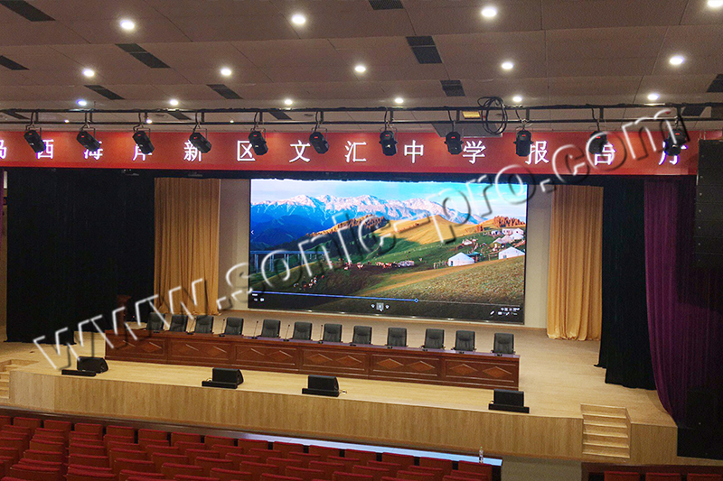 该报告厅是文汇中学的一个综合性报告厅,也是平时召开各种类型的报告演讲、会议以及文艺表演的基本场所,其音响系统功能要求以满足歌舞文艺演出、会议、学术报告、视频播放等多功能使用要求而设计的。