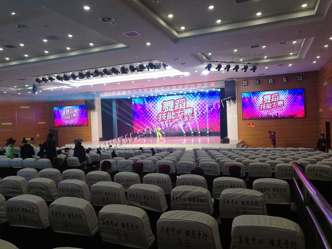 为了加强学校艺术教育,激发学生热爱艺术、热爱生活的情操。承德第三中学经过严格筛选,选定SONIC PRO(斯尼克)音响产品为该校礼堂扩声系统设备。主扩采用8只LA系列线性阵列音箱(LA-210),线阵次低音采用2只双15寸吊挂低音音箱(LA-215S),LA系列线性阵列音箱具有音质优美,传输距离远,声压级大的特点。同时选用4只8×3寸线性音柱(TH-803)作为台唇补声音箱,另外,设计了2只双18寸的低音音箱(SUB-218)作为全场扩声的低频下潜及能量的补充,可以满足各类文艺演出表演的低音需求。4只单12寸(MF-12)作为舞台返听,MF系列音箱是SONIC PRO(斯尼克)音响专门为舞台演出研发的专业返听音箱,根据舞台演出设计调教分频及频响,使舞台演出不容易产生反馈啸叫。4只单15寸(K-15)作为全场辅助扩声,功放系统采用了德国SONIC-PRO音响的LAB系列(LAB-11、LAB-13)、