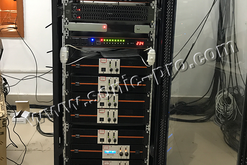 我们还配置了MA系列和TD系列功放,MX24C调音台、MATRIX808数字甘肃音频处理器、AC08效果器、AC03均衡器、GL-202音频隔离器、CS-10电源时序器、DGL-2408反馈抑制器。