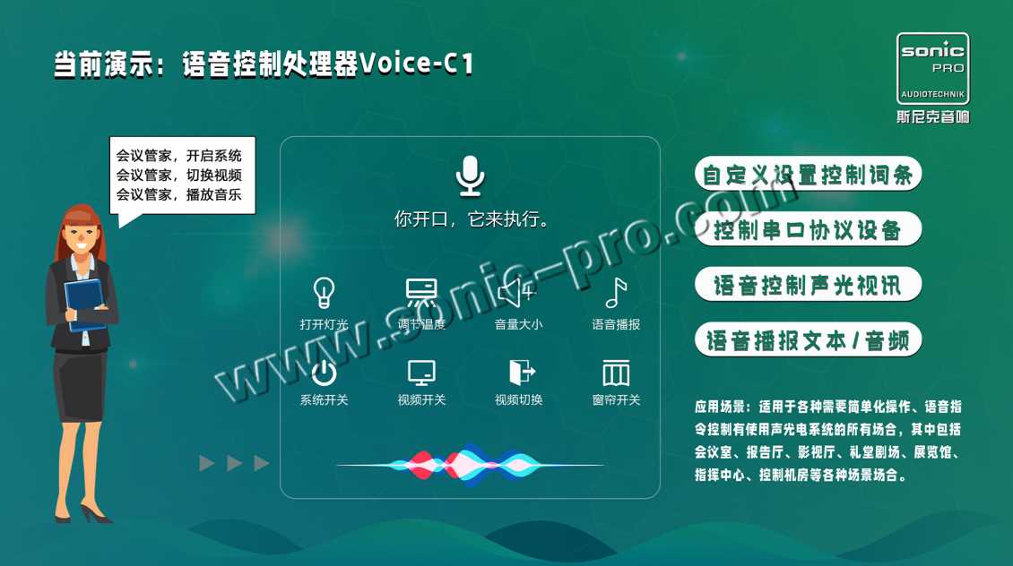 随着AI人工智能的发展,需要更加智能化的设备来满足需求,为了实现音响系统非接触的控制,现在研发了一款人机交互、语音控制处理器,可以进行串口命令的控制,结合斯尼克产品体系中的中控主机,我们在进入一个会议室时,我们可以说,会议管家,打开系统,可以实现灯光,音响,视频,空调等等所有设备的开启。实现整个系统声光视讯的语音控制。